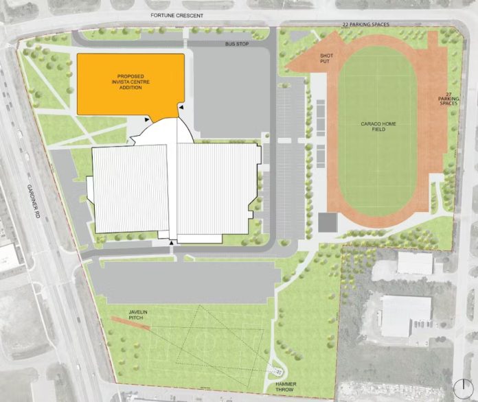 The project, dubbed the “Centre of Community,” will see a significant addition to the existing Invista Centre at 1350 Gardiners Rd. The centerpiece of the build is a new competitive 25-metre, 10-lane aquatics facility, alongside a leisure pool and a comprehensive wellness centre.