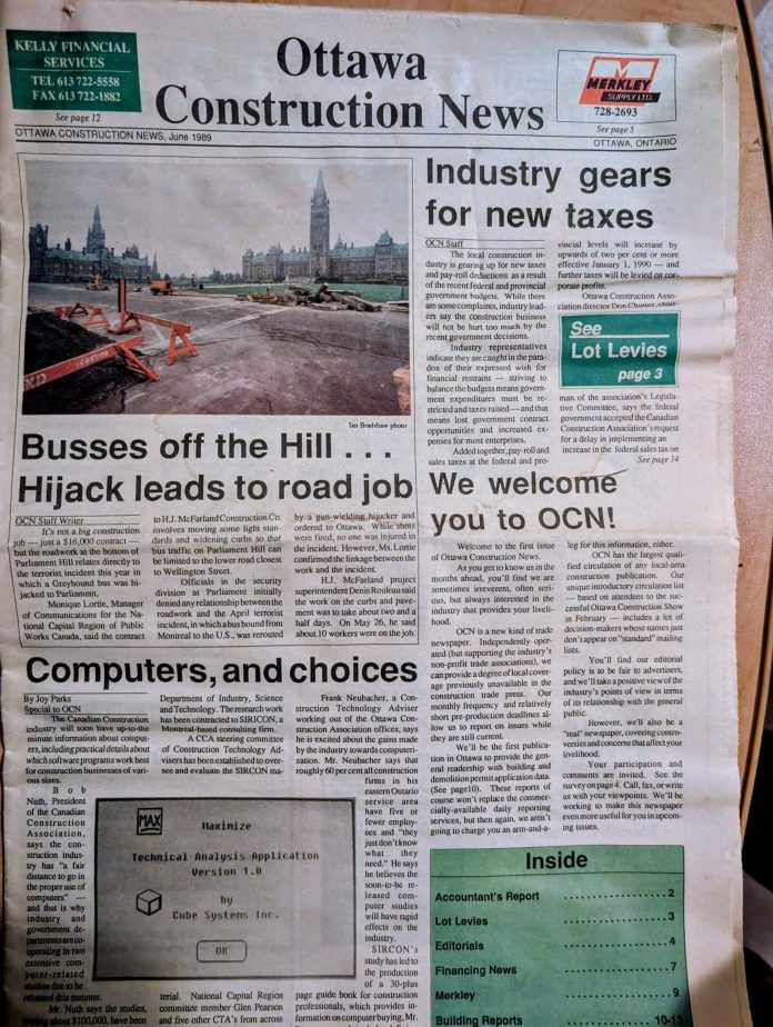 I remember well Ottawa Construction News’ conception. In the early evening three and a half-decades ago, in a modest Smiths Falls hotel room, a flash of inspiration came to my mind. “Could Ottawa support a specialized monthly construction trade newspaper?”
