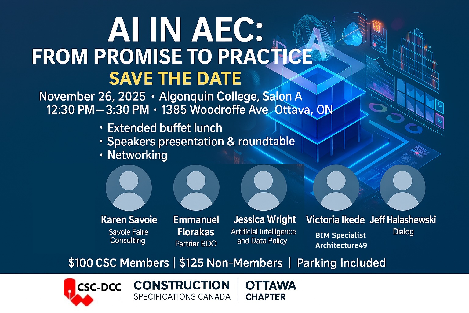 The Ottawa chapter of Construction Specifications Canada (CSC) is set to tackle one of the most transformative topics in the industry with its upcoming event, “AI in AEC: From Promise to Practice.”