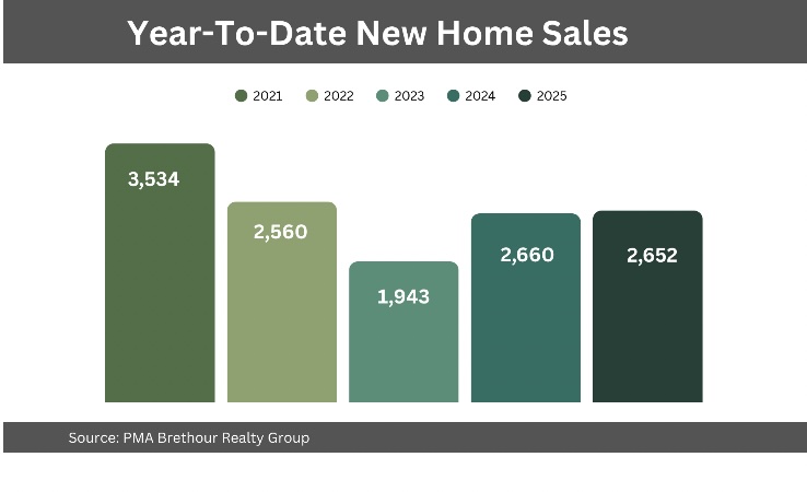 There were 287 new homes sold in September, a four per cent decrease from the 299 sales recorded in August. According to a new report from the Greater Ottawa Home Builders’ Association (GOHBA) and PMA Brethour Realty Group, year-to-date sales for 2025 are now at 2,652 homes, nearly identical to the 2,660 sold by this time in 2024.